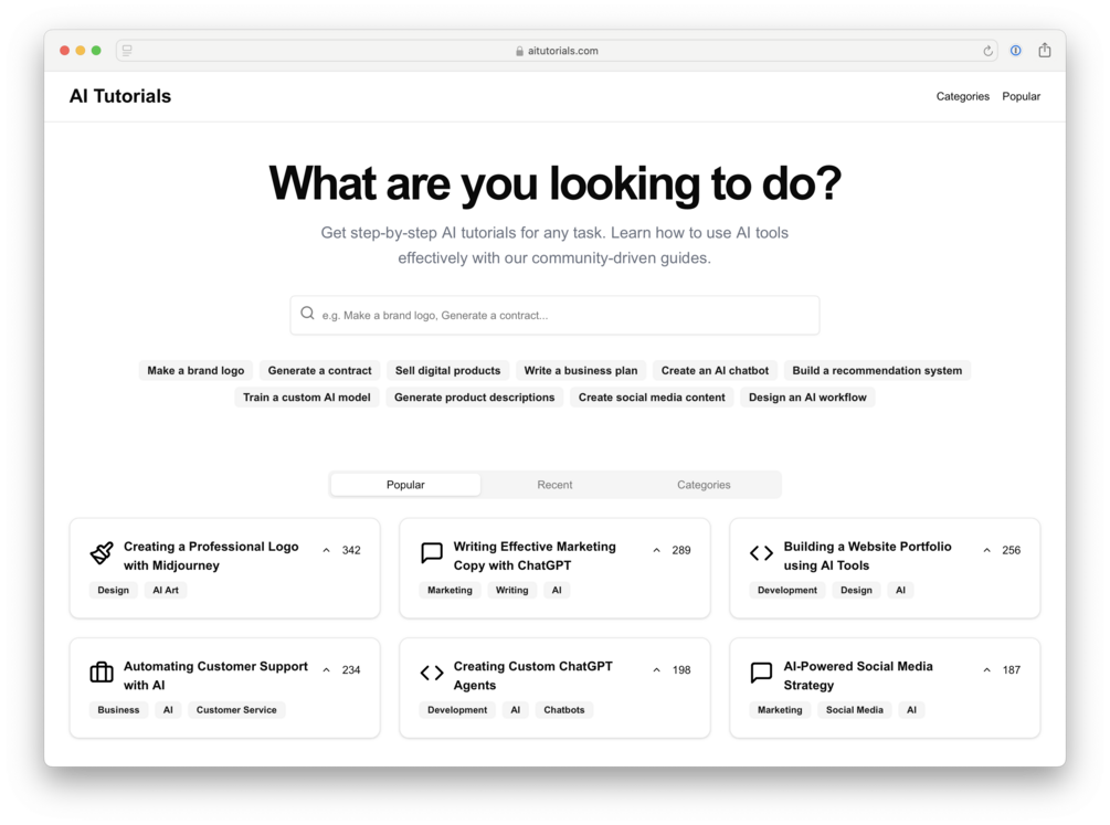 The final product–what you'll be able to design/build from scratch!–can be seen at AI Tutorials.com